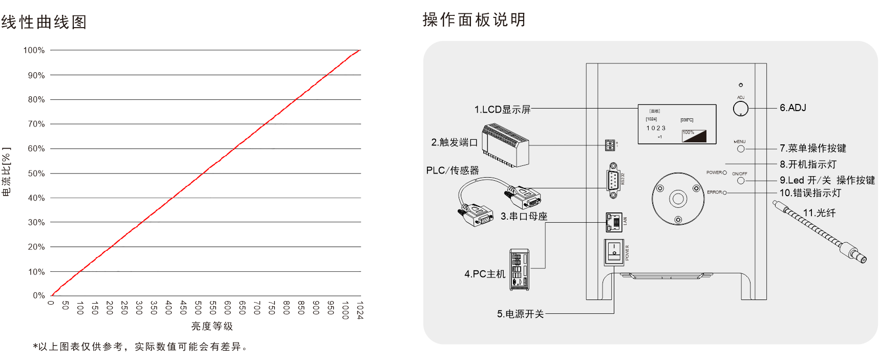 手动编码器旋钮调节、RS232/ LAN通讯调节可选 |