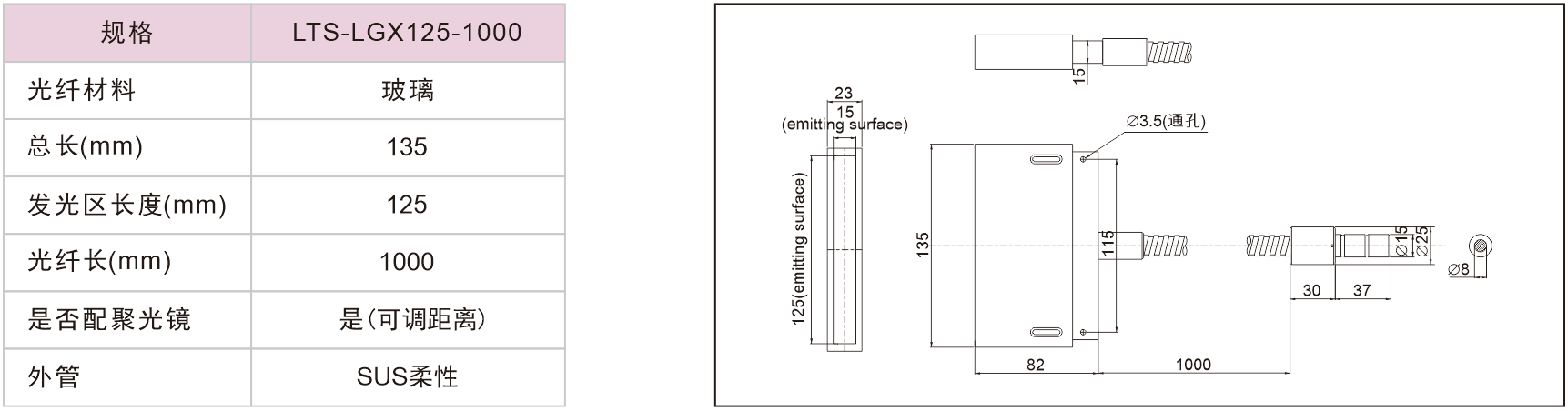 线型光纤(无聚光镜)