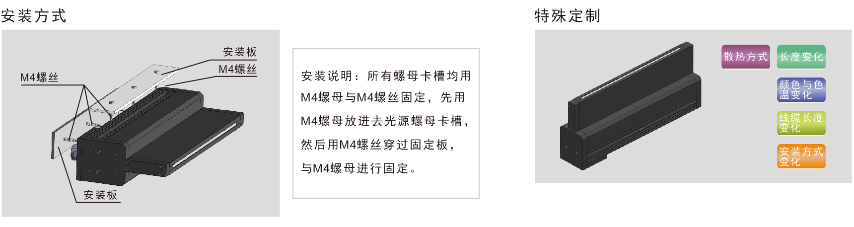 * 最长可定制5米。紫外和红外光源可根据客户要求定制。 * 发光峰值波长/相关色温:红色:620-630nm,绿色:525-530nm,蓝色:465-470nm,白色:6600K(色温)。 * 按100mm单位提供各种发光面尺寸。关于其他尺寸的详细内容,请向本公司 销售负责人进行咨询。 |