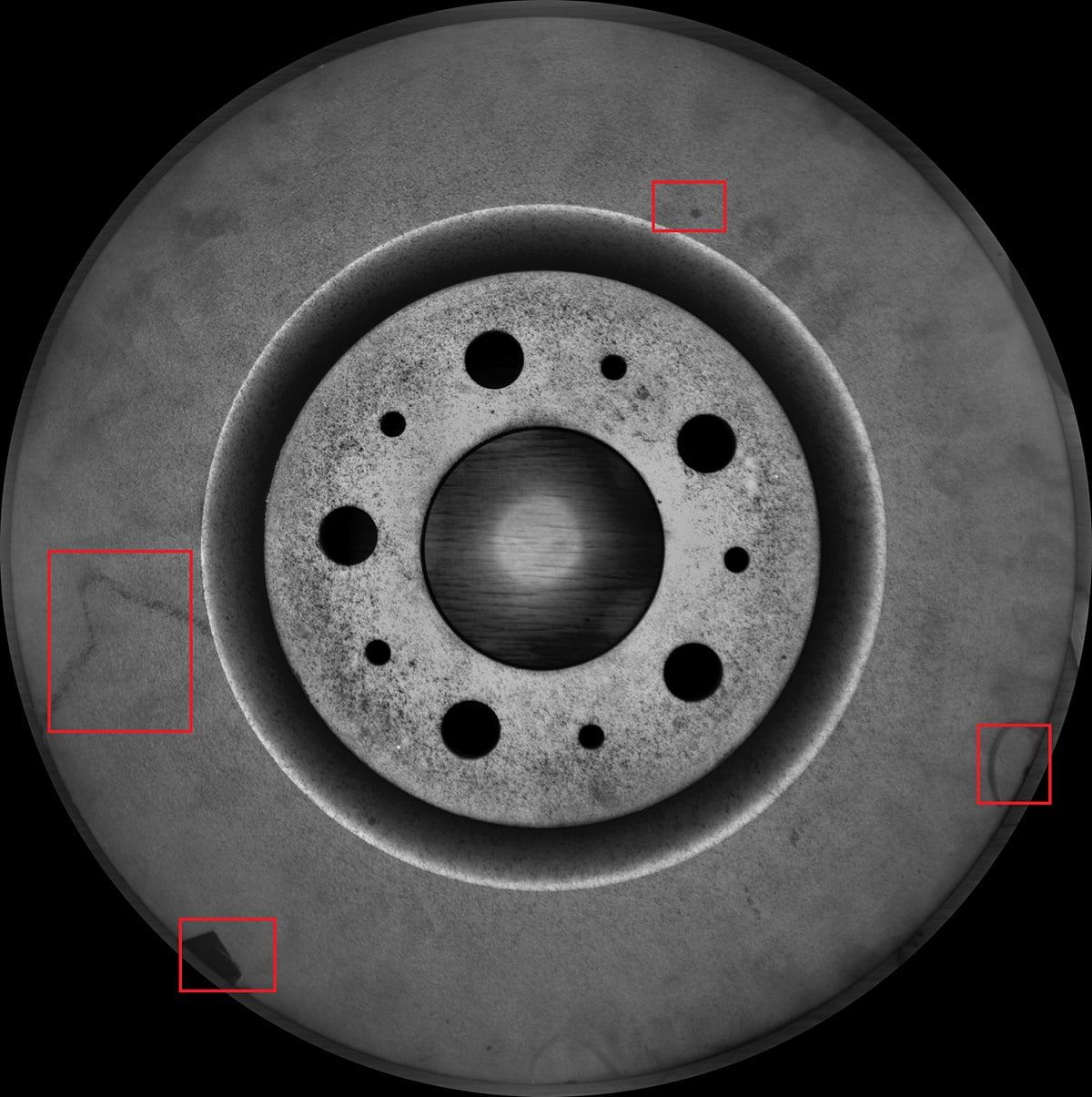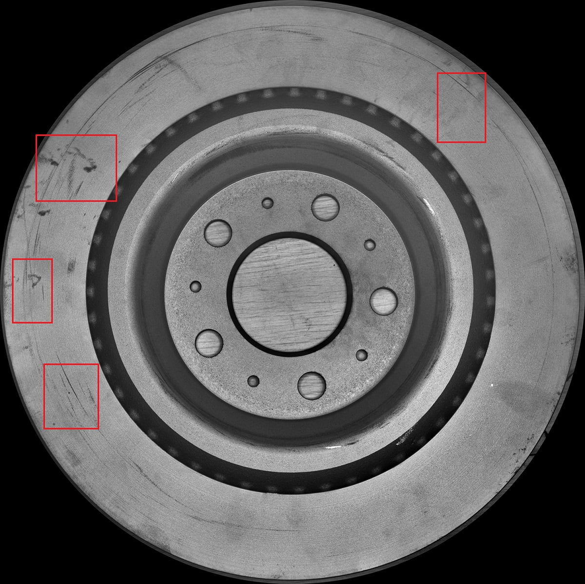 在汽车制造领域,刹车盘作为车辆制动系统的关键安全部件,其质量直接影响到驾驶员的行车安全。刹车盘生产过程中因不同生产工艺、生产环境、人工操作等因素,其成品常存在多种缺陷。表面缺陷主要有划痕、砂眼、凹坑、生锈、磕碰、裂纹、风道异物等,这些缺陷会直接影响刹车盘的强度、硬度、应力、承受力等多项技术指标,从而缩短使用寿命,并带来严重的安全隐患。因此,对刹车盘外观缺陷进行精确检测显得尤为重要。