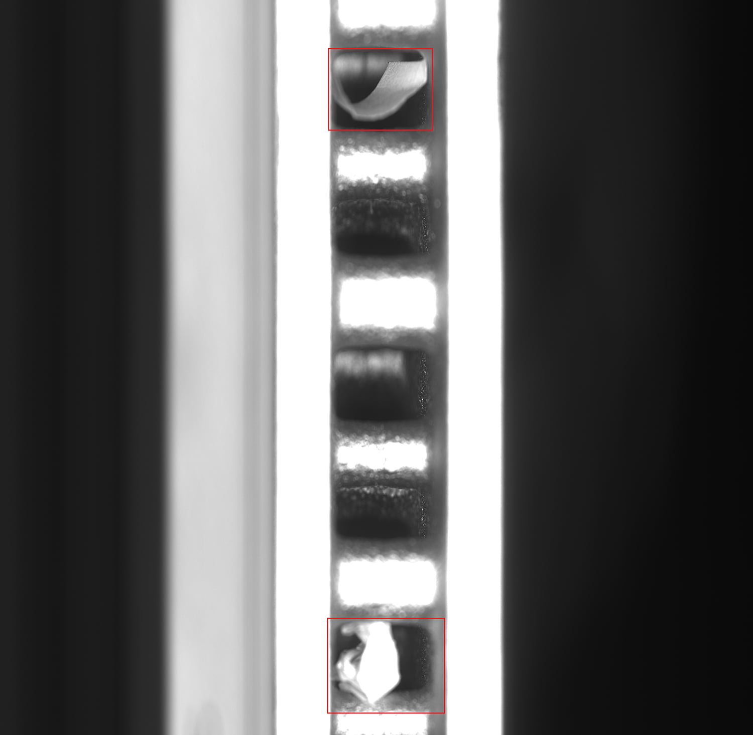 风道斜面空间狭窄(宽 1-2cm、深 3-5cm),普通光源难以深入。环绕式安装多台相机协同工作,共用一个光源照射,同步控制采集图像。与风道内壁对比明显,避免了光照不足导致的漏判(如图3所示)。
