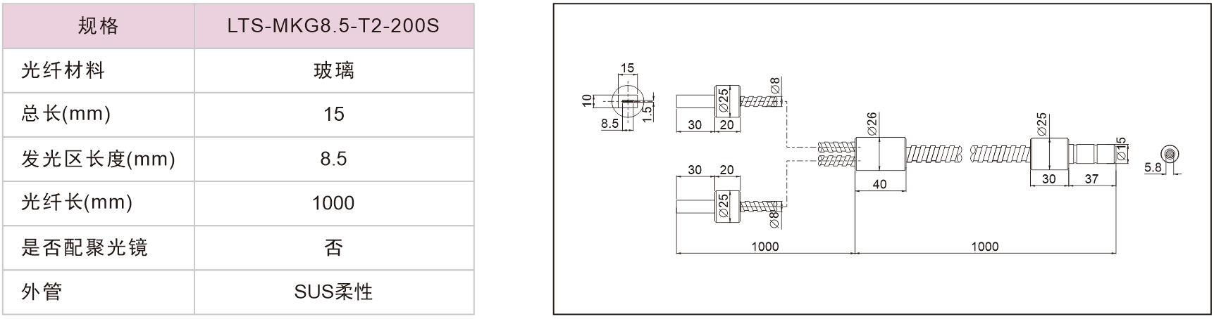 线型光纤(无聚光镜)